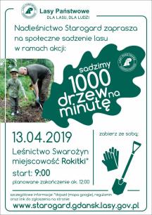 Zapraszamy chętnych mieszkańców powiatu starogardzkiego i tczewskiego do czynnego udziału w corocznej otwartej akcji sadzenia lasu, która rozpocznie się 13 kwietnia br. o godzinie 09:00 w leśnictwie Swarożyn w miejscowości Rokitki przy ulicy Leśnej / Jesionowej.