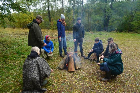 Od dwóch dni padał deszcz. Sobota również przywitała nas taką aurą w wydaniu o wiele ostrzejszym, niż zakładały prognozy pogody. Przez myśl przeszedł nam pomysł o odwołaniu akcji. Jednak wiele zadań do zrealizowania i ambicje szybko ostudziły ten impuls. Przyjechaliśmy planowo na godzinę technicznej zbiórki, która wyznaczyliśmy na godzinę 10:00. Sześćdziesiąt minut przed eventem dla pięciu osób jest wystarczające do przygotowania imprezy i konkretnego zmoknięcia. Z pracami uporaliśmy się szybciej niż zakładaliśmy i dobrze, bo dzięki temu i dzięki uprzejmości miejscowego leśniczego Jarka, napiliśmy się ciepłej kawy.