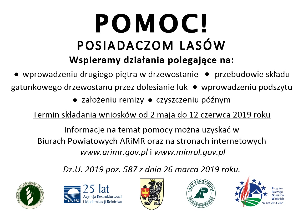 Na podstawie ROZPORZĄDZENIA MINISTRA ROLNICTWA I ROZWOJU WSI z dnia 26 marca 2019 r. w sprawie szczegółowych warunków i trybu przyznawania pomocy finansowej w ramach poddziałania „Wsparcie na inwestycje zwiększające odporność ekosystemów leśnych i ich wartość dla środowiska” objętego Programem Rozwoju Obszarów Wiejskich na lata 2014–2020 Nadleśnictwo Starogard informuje, iż przyjmuje wnioski w sprawie sporządzenia planu inwestycji polegającej na: