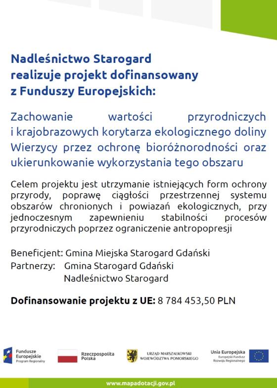 Realizacja projektu pn. ,,Zachowanie wartości przyrodniczych i krajobrazowych korytarza ekologicznego doliny Wierzycy przez ochronę bioróżnorodności oraz ukierunkowanie wykorzystania tego obszaru”